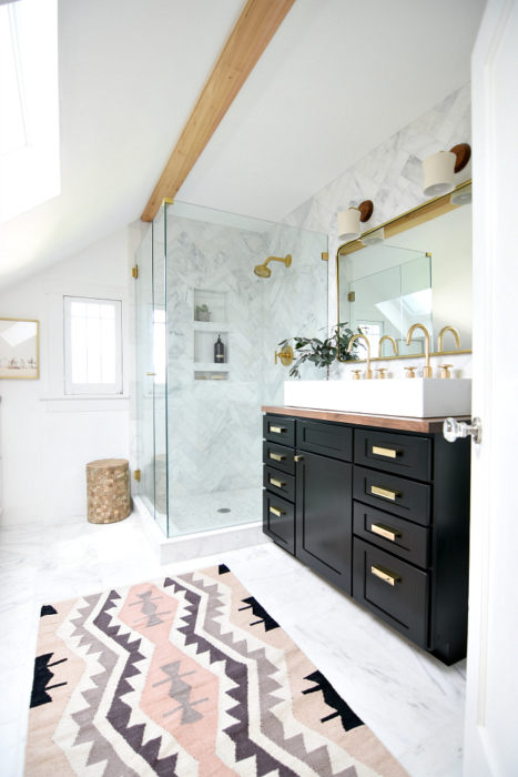Marble, brass, black, white, and wood - my favorites. There's nothing more that House Updated's bathroom could need.