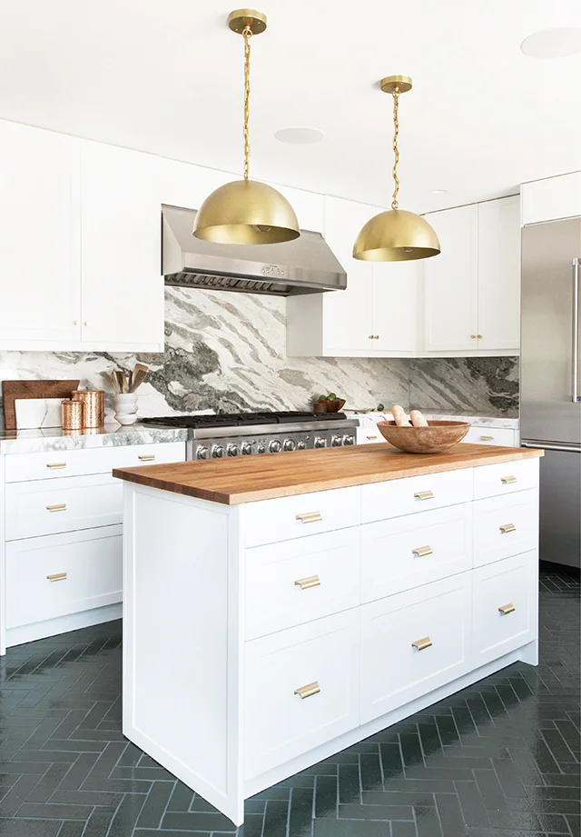 The kitchen at the top of this post is the bee's knees, but this kitchen from Sarah Sherman Samuel is basically my dream kitchen. Black, white, brass, copper, marble, wood! It has all of my favorites in one cohesive space.