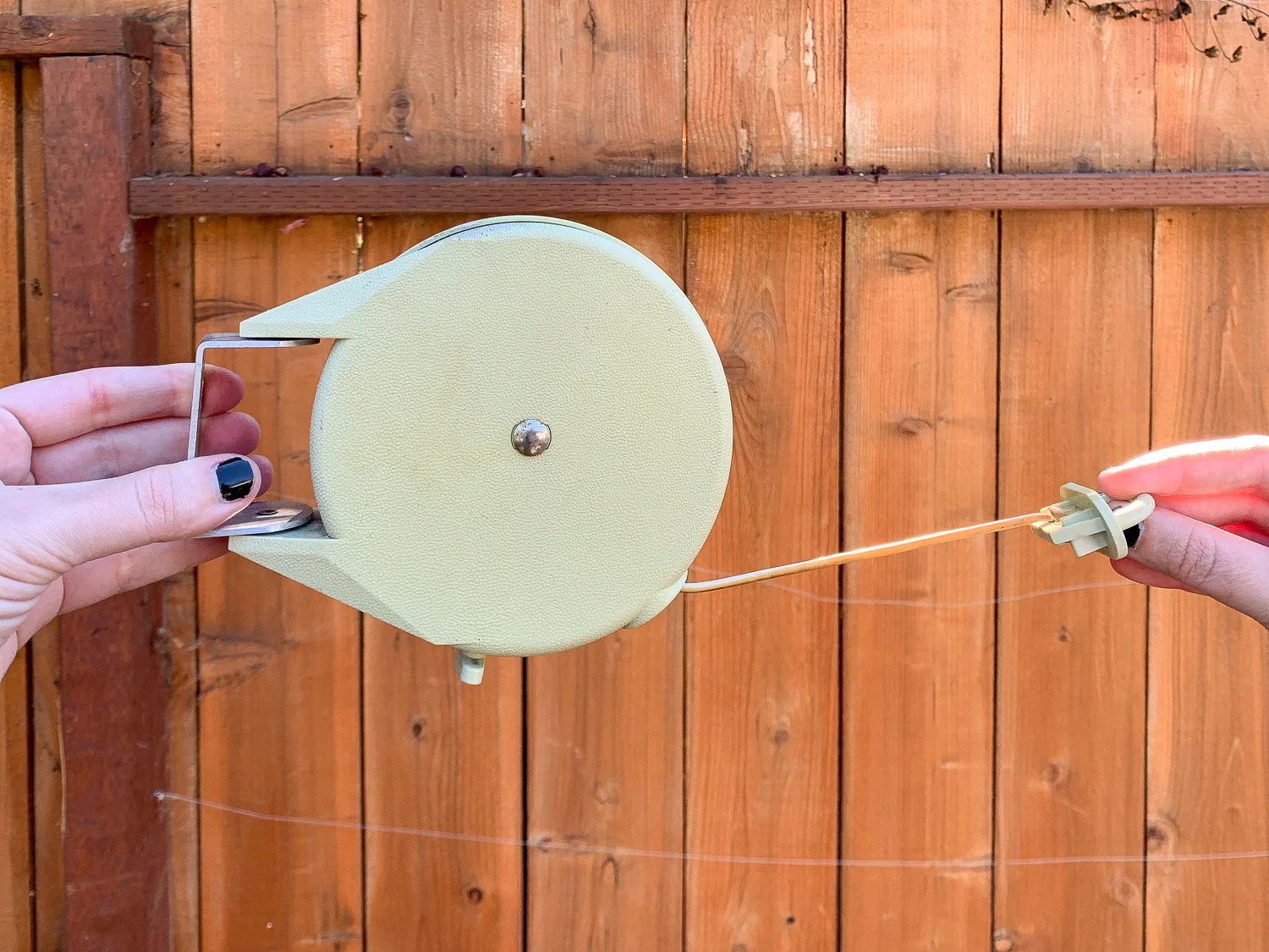 Since I’m not doing laundry constantly, it’s nice to tuck the line out of the way, so I got a retractable clothesline that works like a dream.