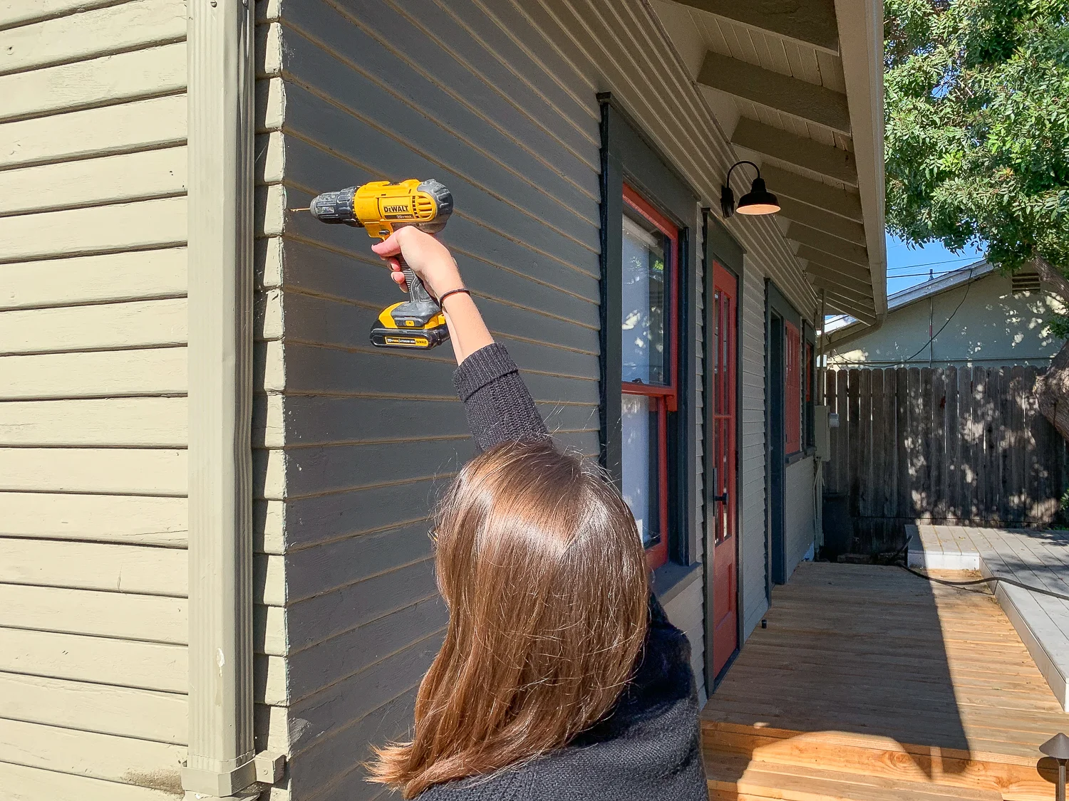 Then, I mounted a hook on the side of the house that you don’t even notice when the line is tucked away. I made sure to mount them both up high enough that I could walk underneath them but not so high that I couldn’t reach a clothespin.