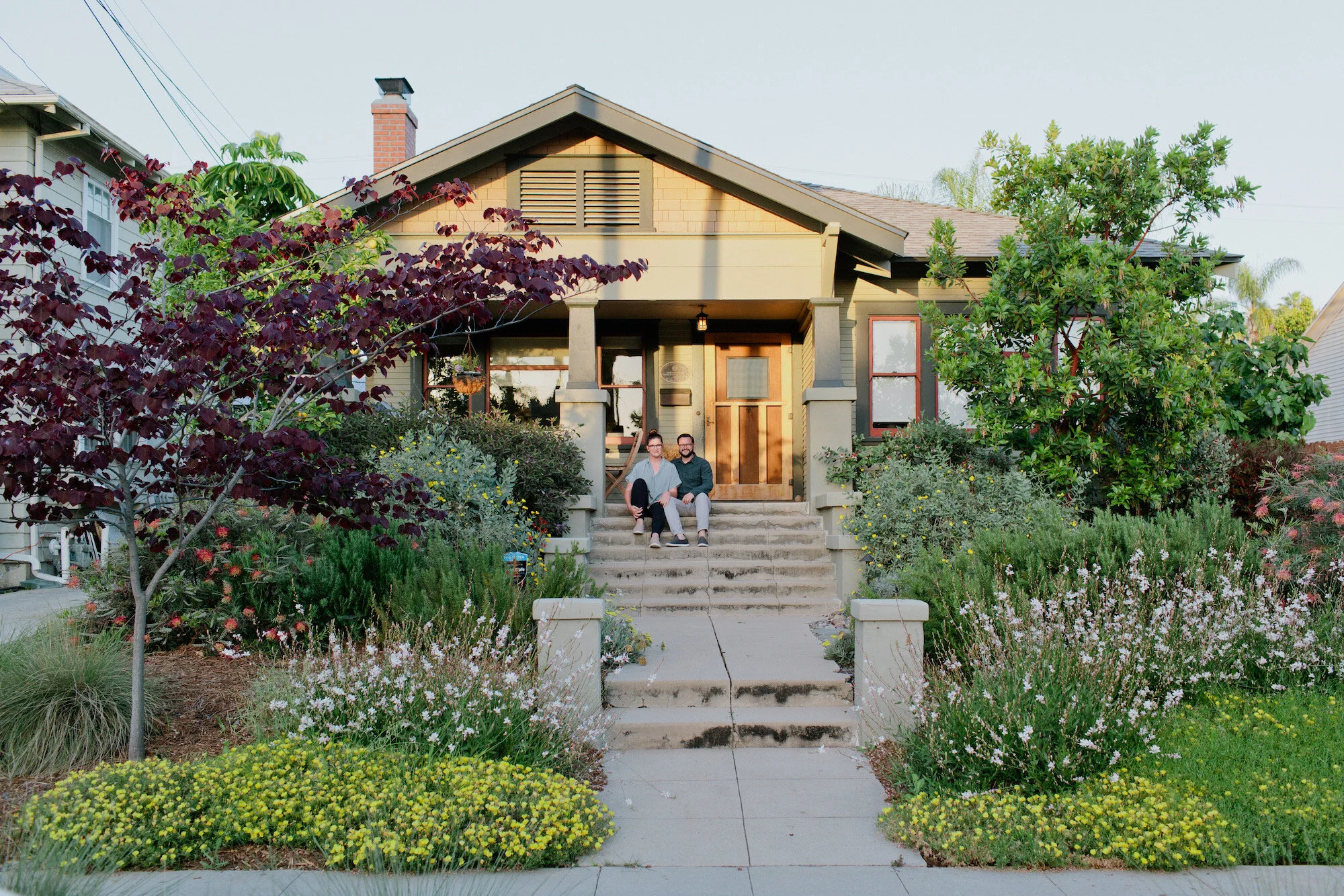 A photographer neighbor down the block (that we’re ashamed to say we never met!) strolled by and took the boxes I left by the curb for her daughters to play with, and then she asked if she could take our picture. She’s taking photos for the Front Steps Project, a nation-wide project where photographers capture folks at home on their steps during these strange times, and the recipients make a donation to a local food bank or organization supporting COVID-19 efforts. We participated and got some sweet photos of us in front of the home we love so much! Check out Kate and the other photos she’s been taking of our little community. Uhm also, our garden is out of control!