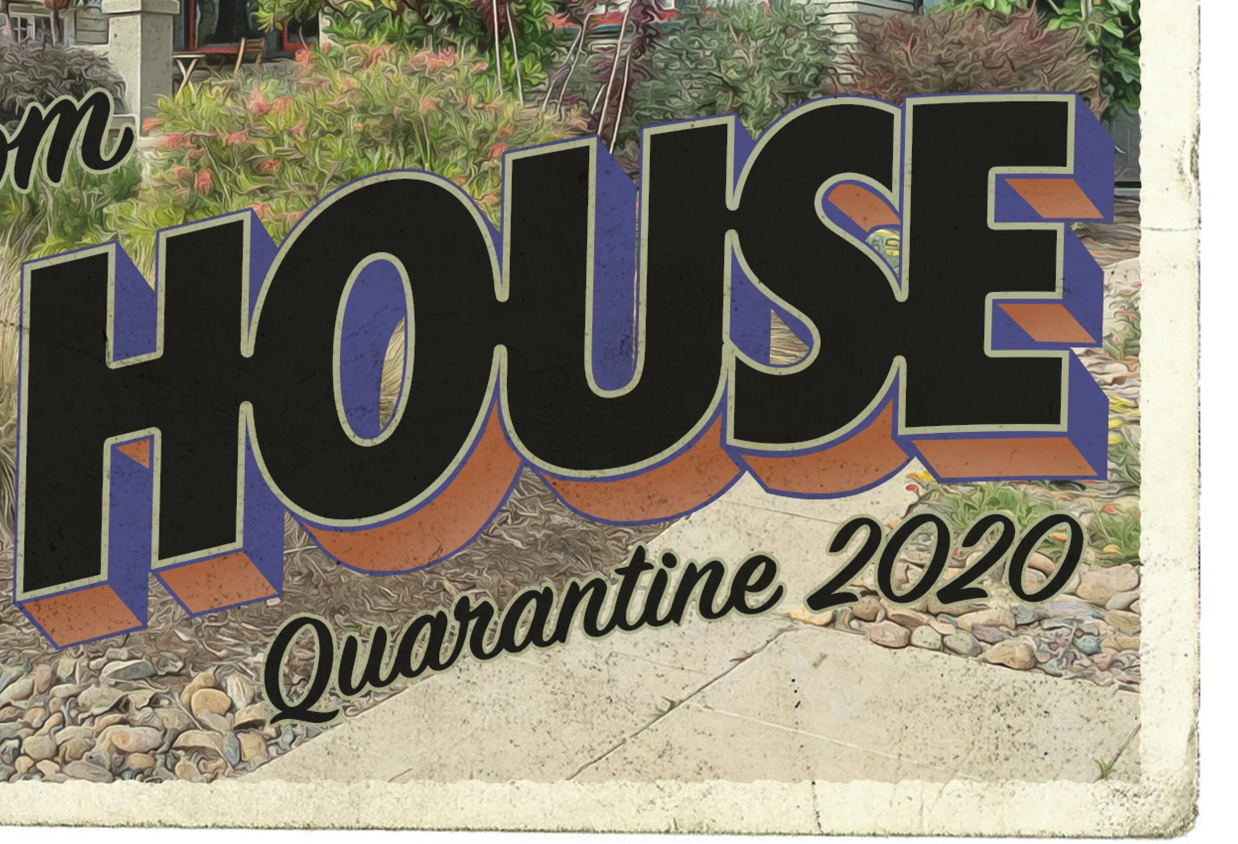 This is the fun part! The words “greetings from” is key to match the retro design, but from there you can write whatever you want. I went with “our house” and “quarantine 2020” but go wild here.